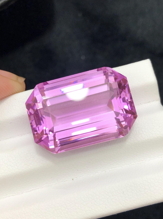 42.85ct Deep Pink Kunzite – Flawless Emerald Cut Gemstone from Afghanistan