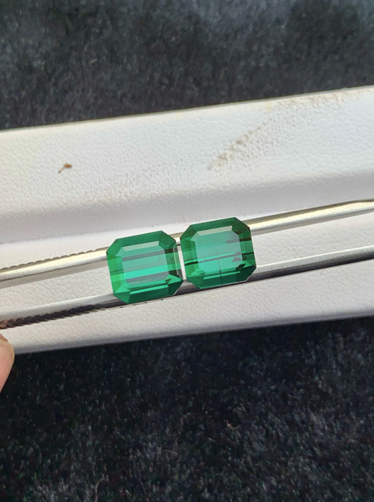 8.80ct Forest Green Tourmaline Pair – Natural Emerald Cut Elbaite from Afghanistan