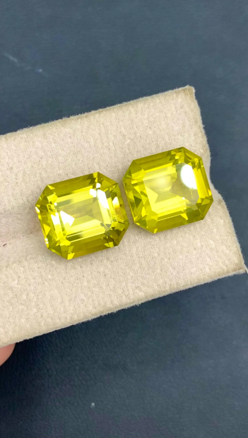 19.55ct Natural Olive Green Citrine Pair – Emerald Cut Quartz Gemstones for November Birthstone Jewelry