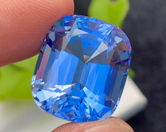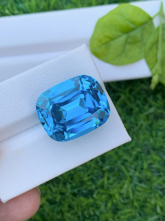 35.65ct Electric Blue Topaz – Loupe Clean Cushion Cut Gemstone from Brazil